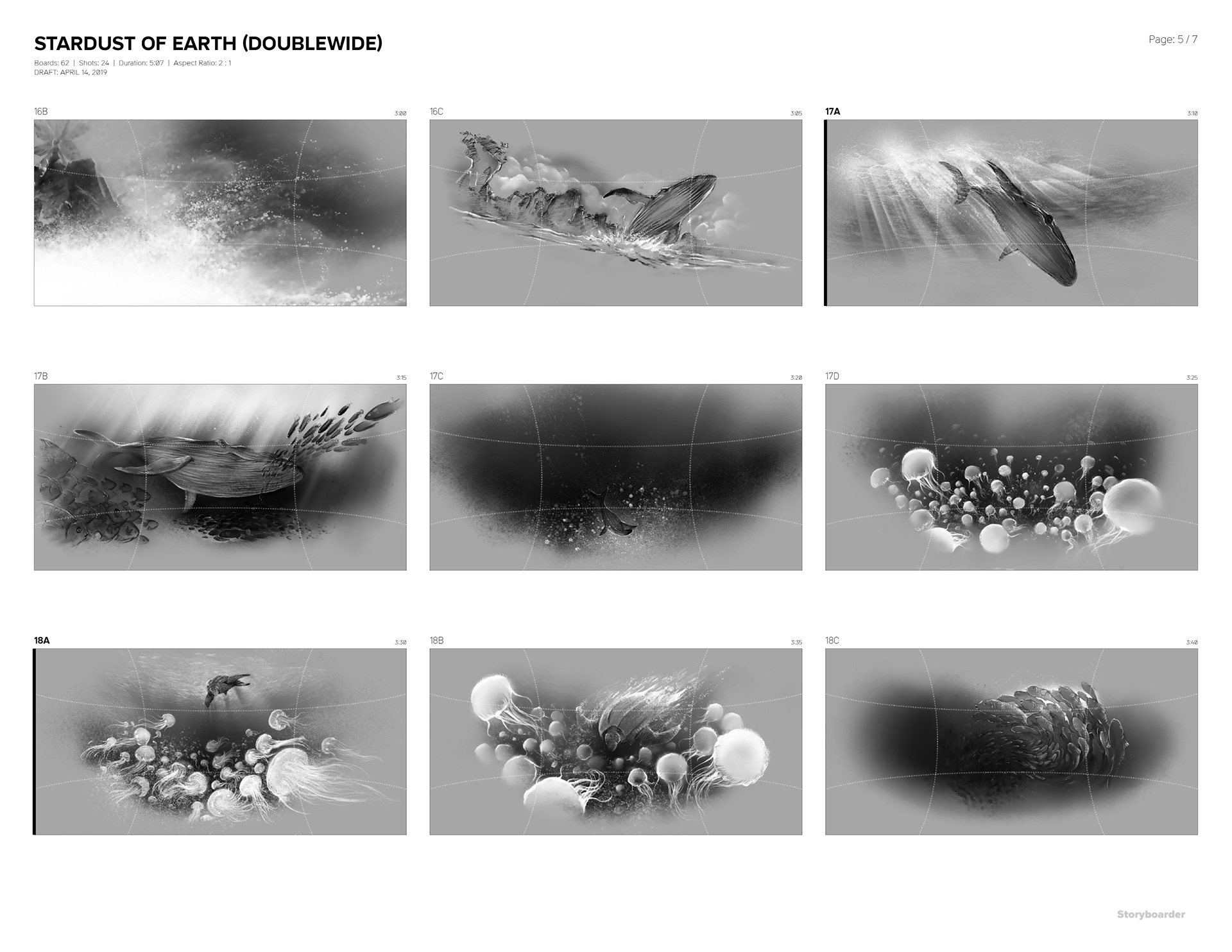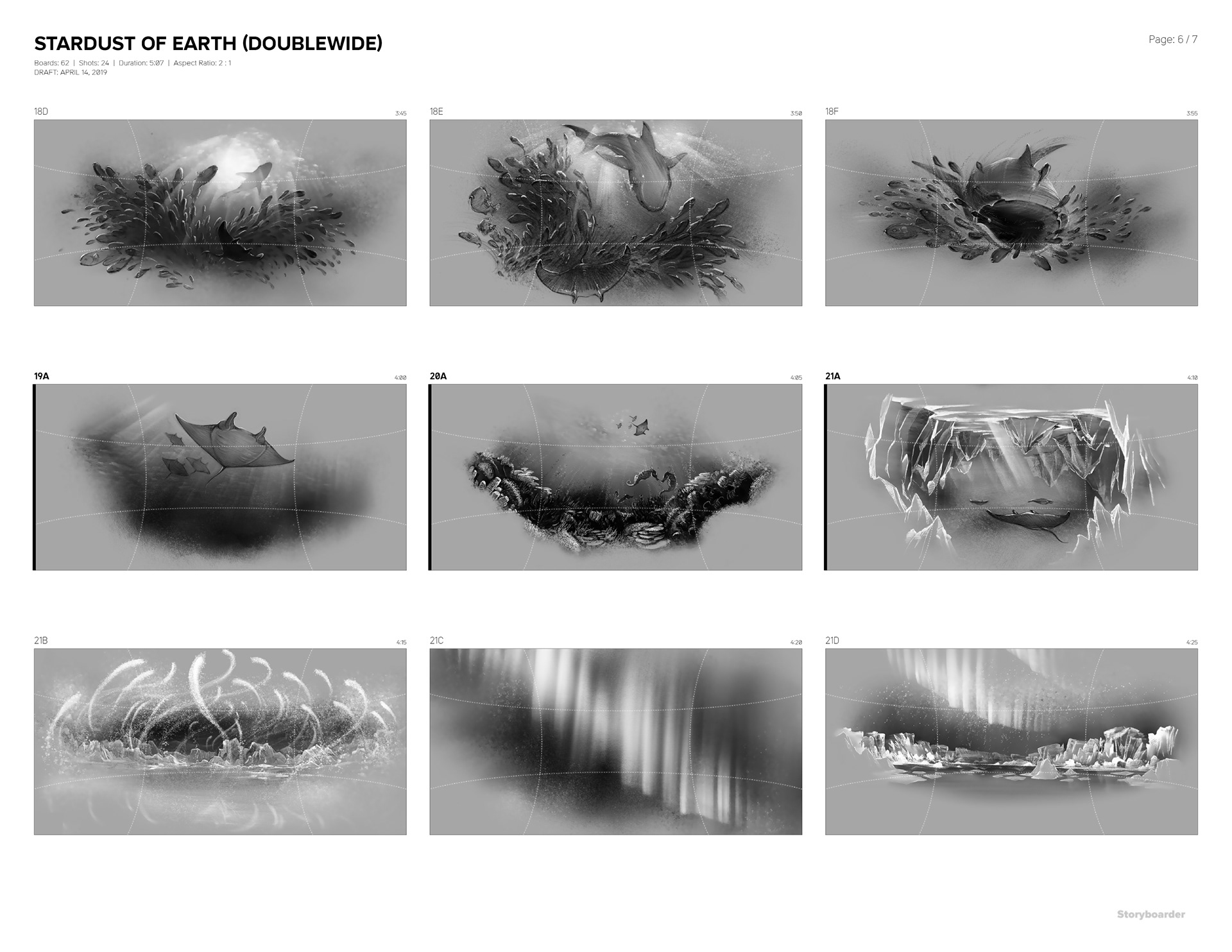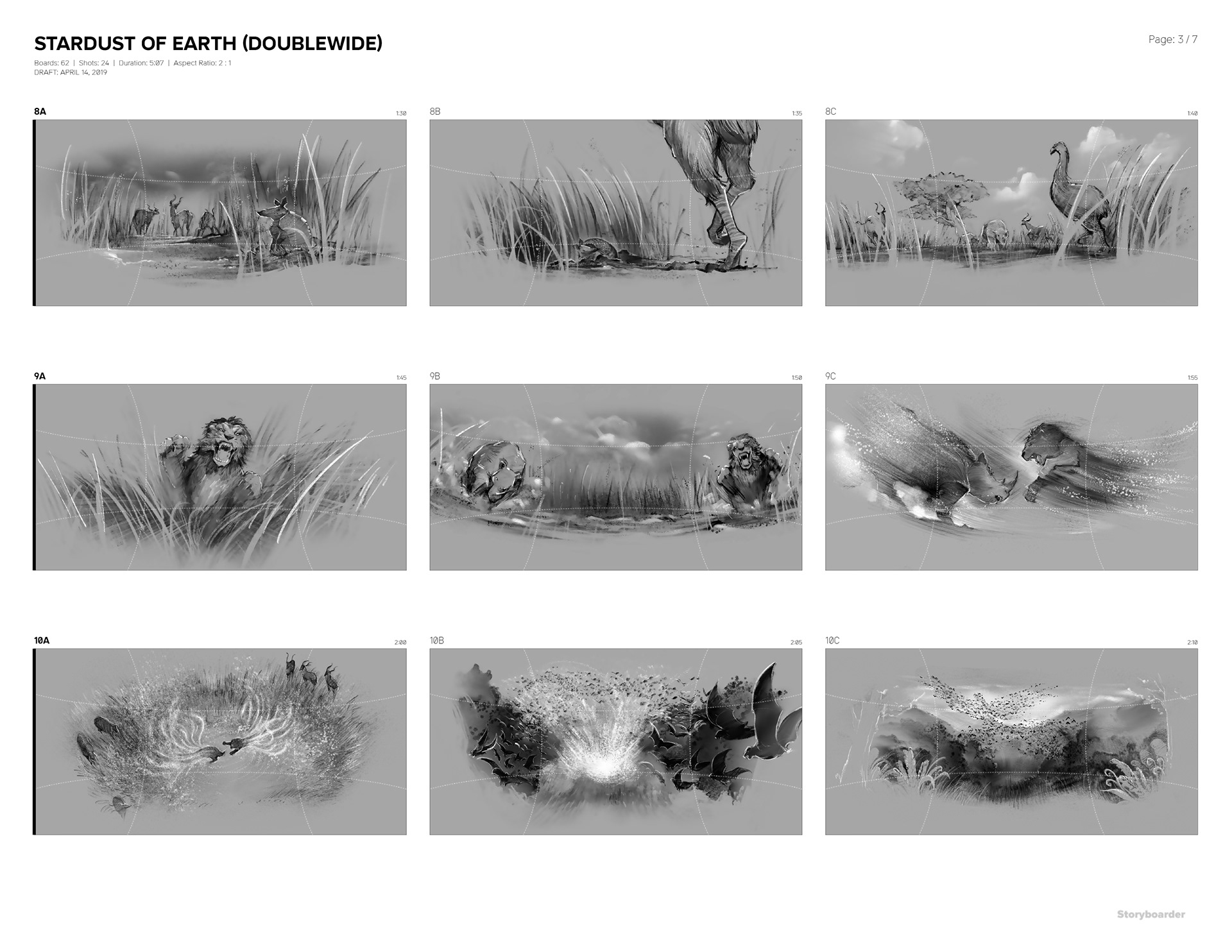 This is a storyboard for a short movie to be shown on a spherical screen. The movie takes viewers through vibrant lives of earth.