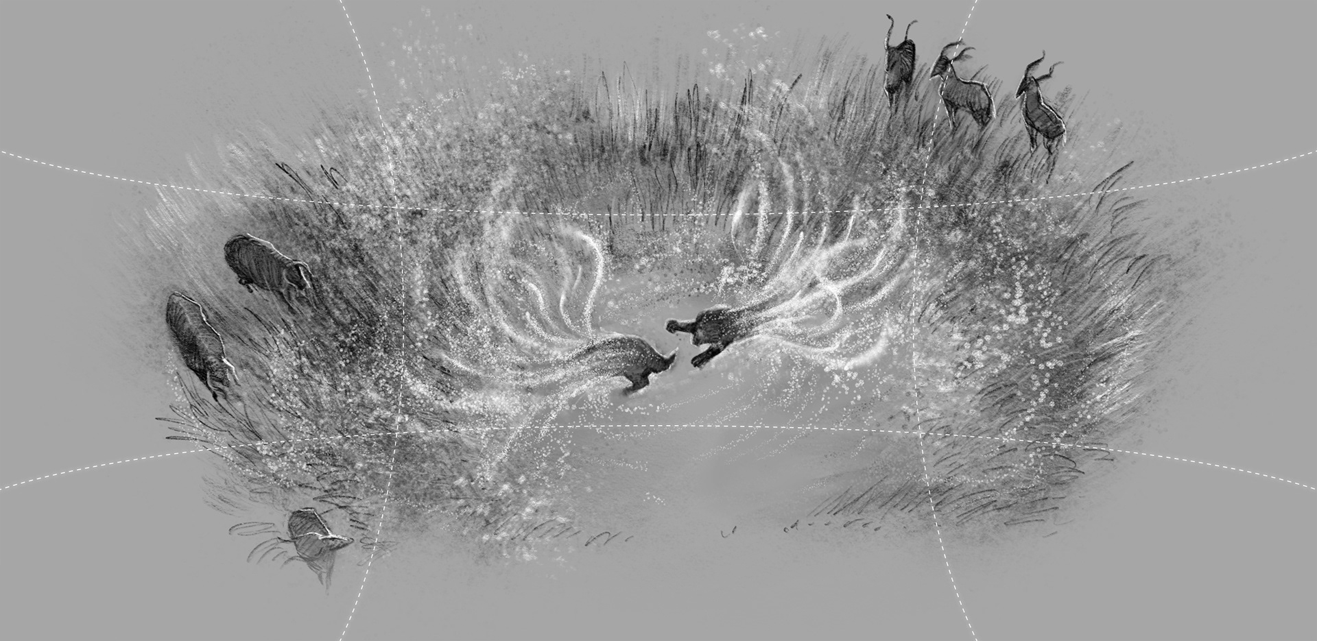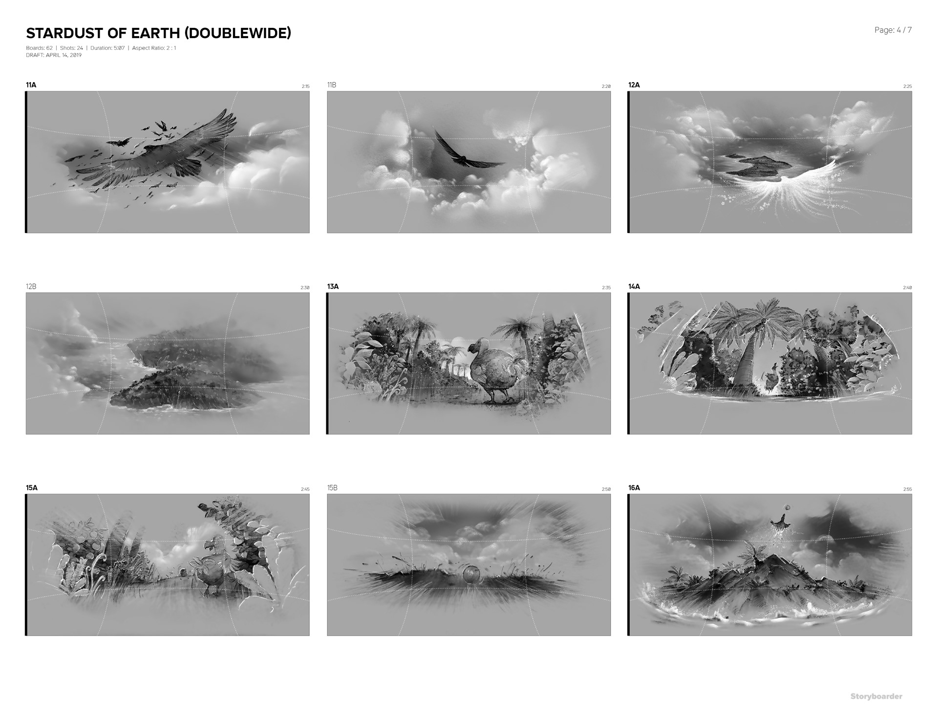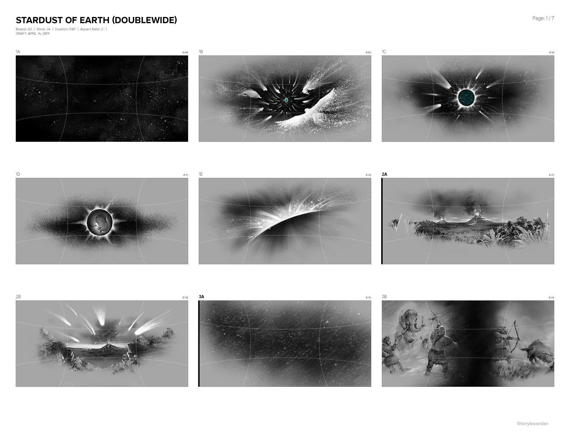 This is a storyboard for a short movie to be shown on a spherical screen. The movie takes viewers through vibrant lives of earth.
