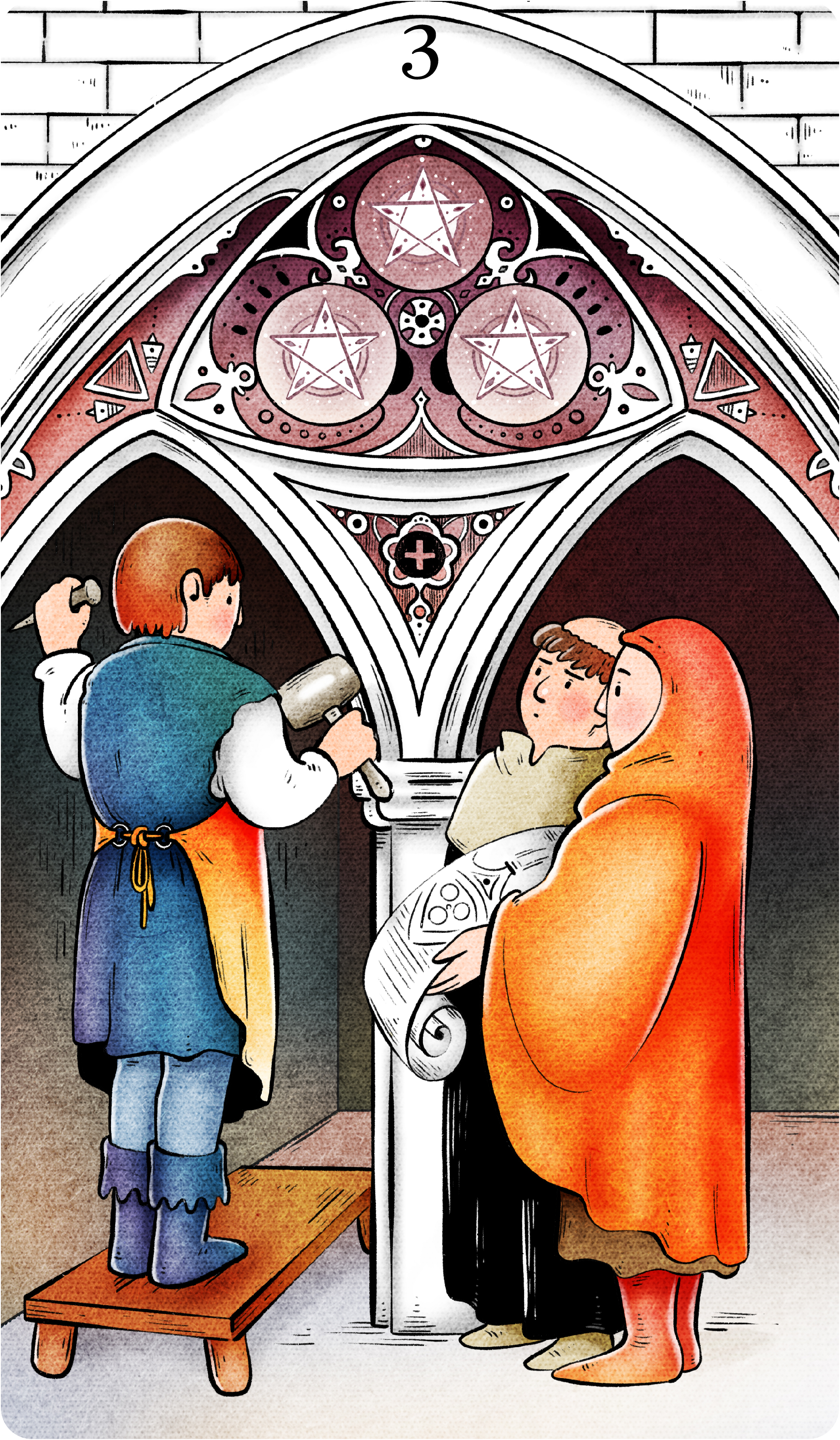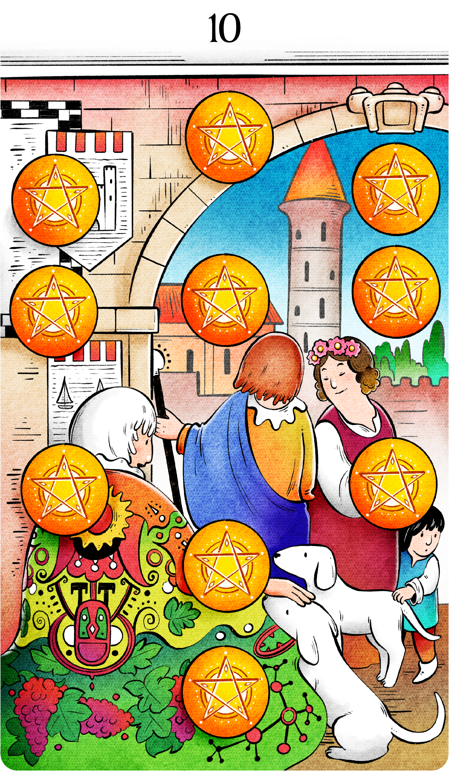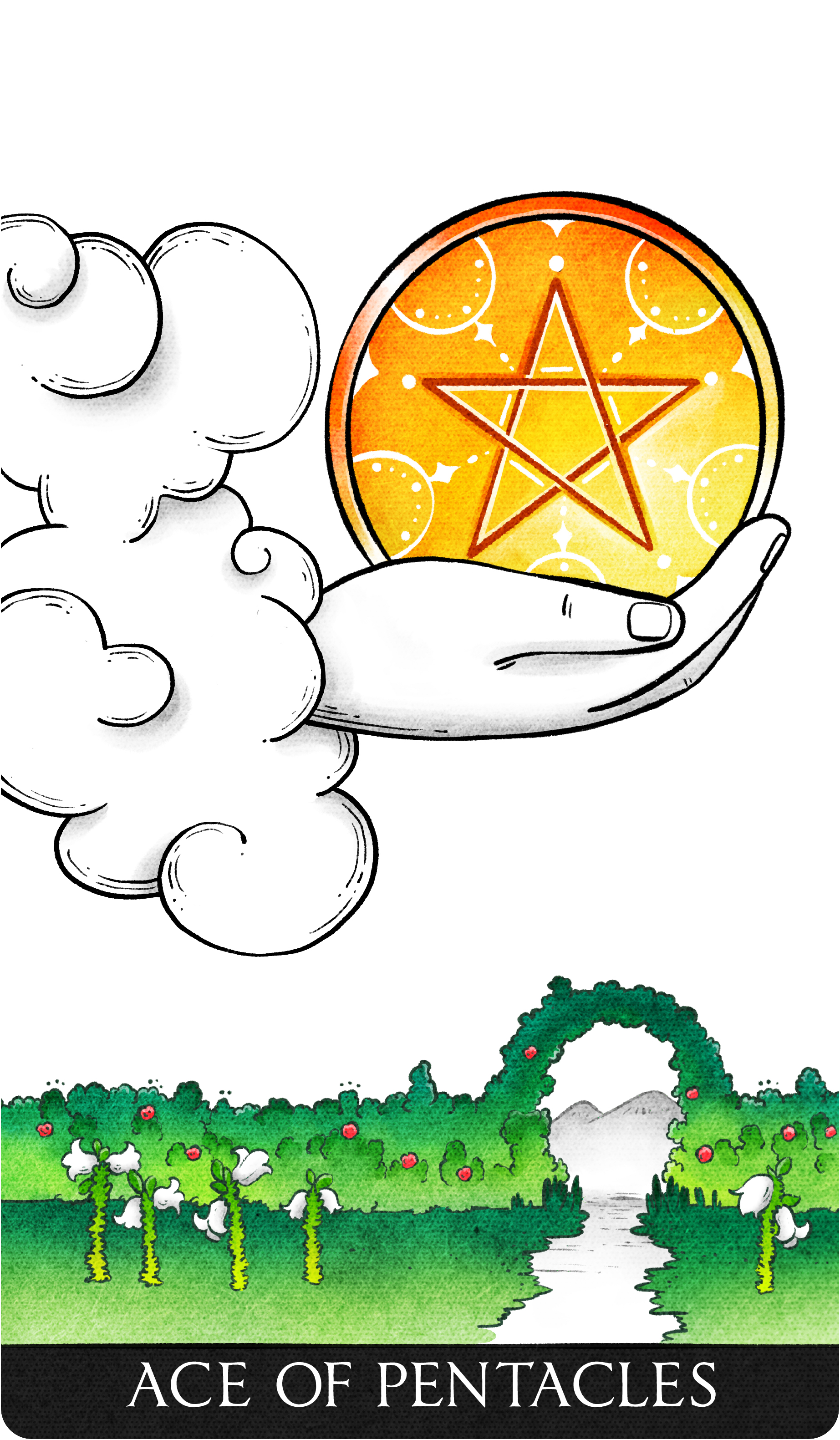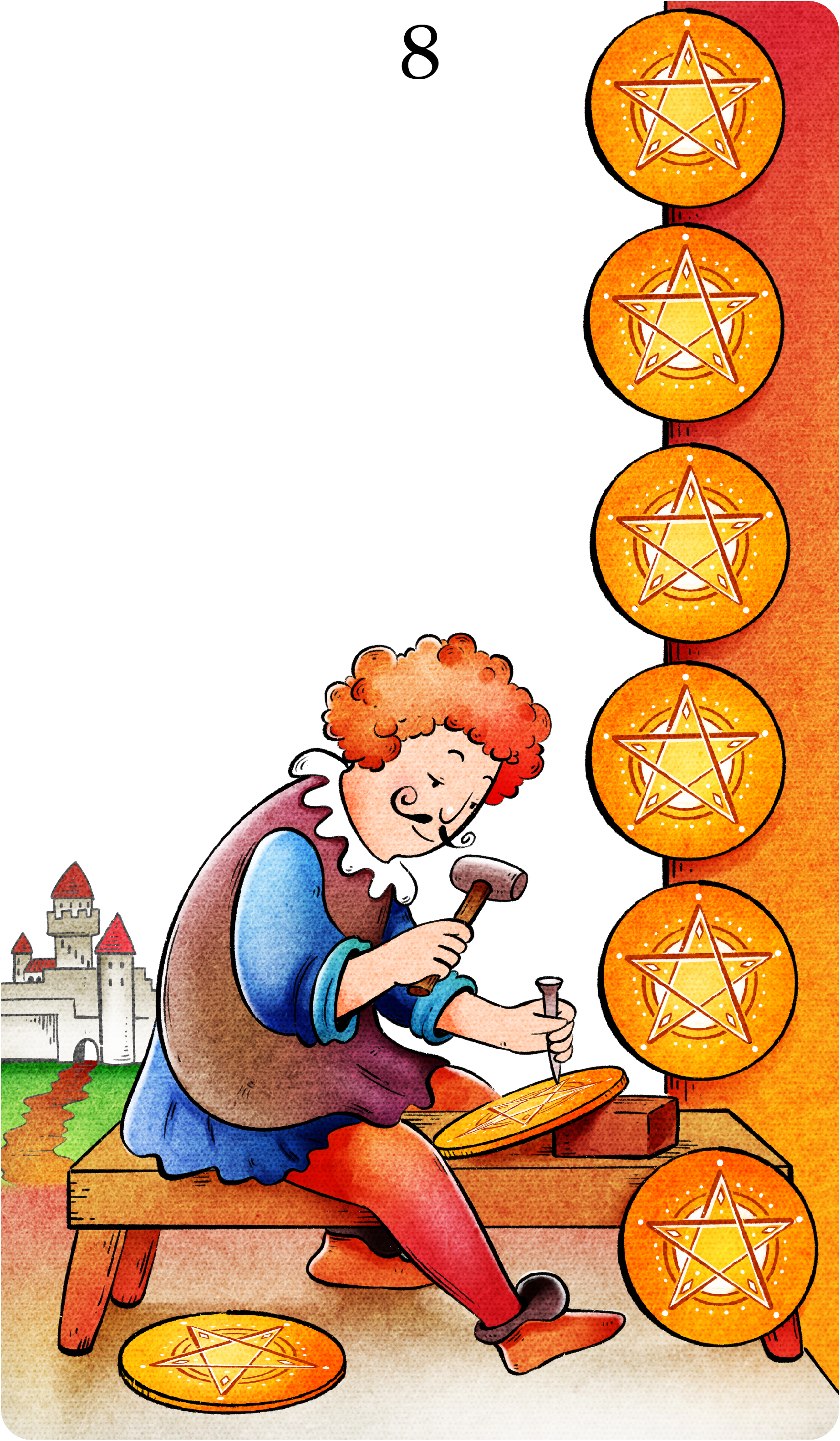Tarot Card Illustrations of Minor Arcana Pentacles